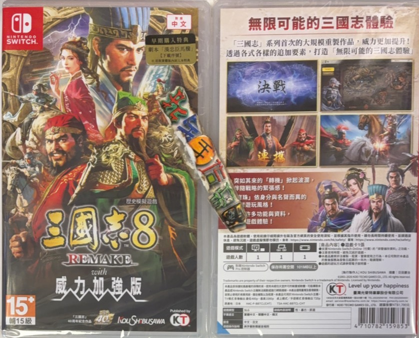 NS--1280三國志 8 Remake 初回特典版(ACT,中韓文亞版,輔 15 級,CODE:4710782159235) --售價1,650元.