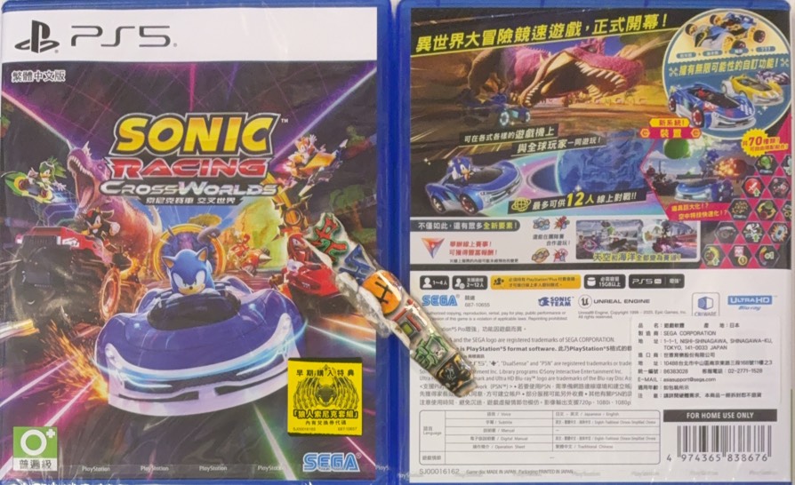 PS5--0484索尼克賽車 交叉世界 初回特典版(ACT,中英文亞版,保 護 級,CODE:4974365838676) +文件夾特典 --售價1,800元.